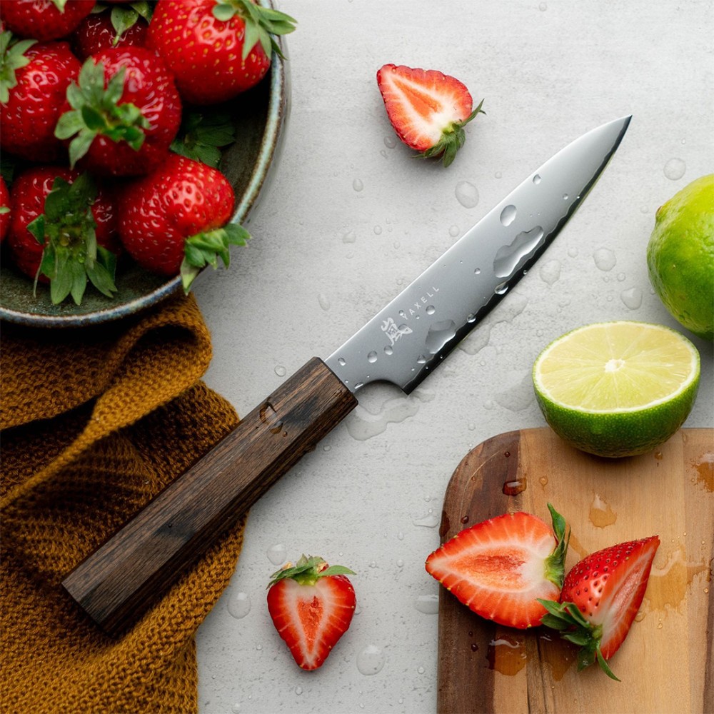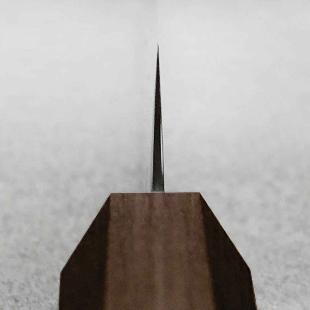 Преміальна восьмикутна темно-коричнева ручка з Pakka Wood (композит дерева та смоли), розроблена досвідченими дизайнерами Yaxell, забезпечує ідеальний баланс та оптимальний контроль.