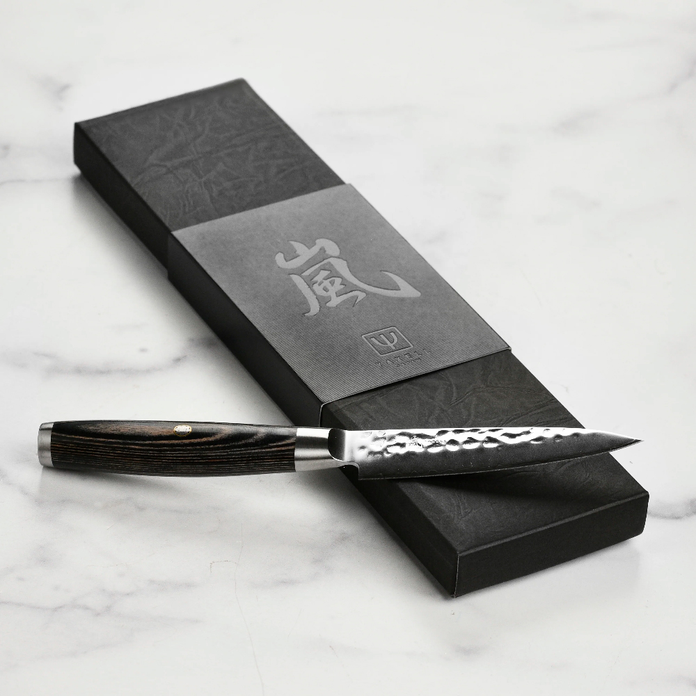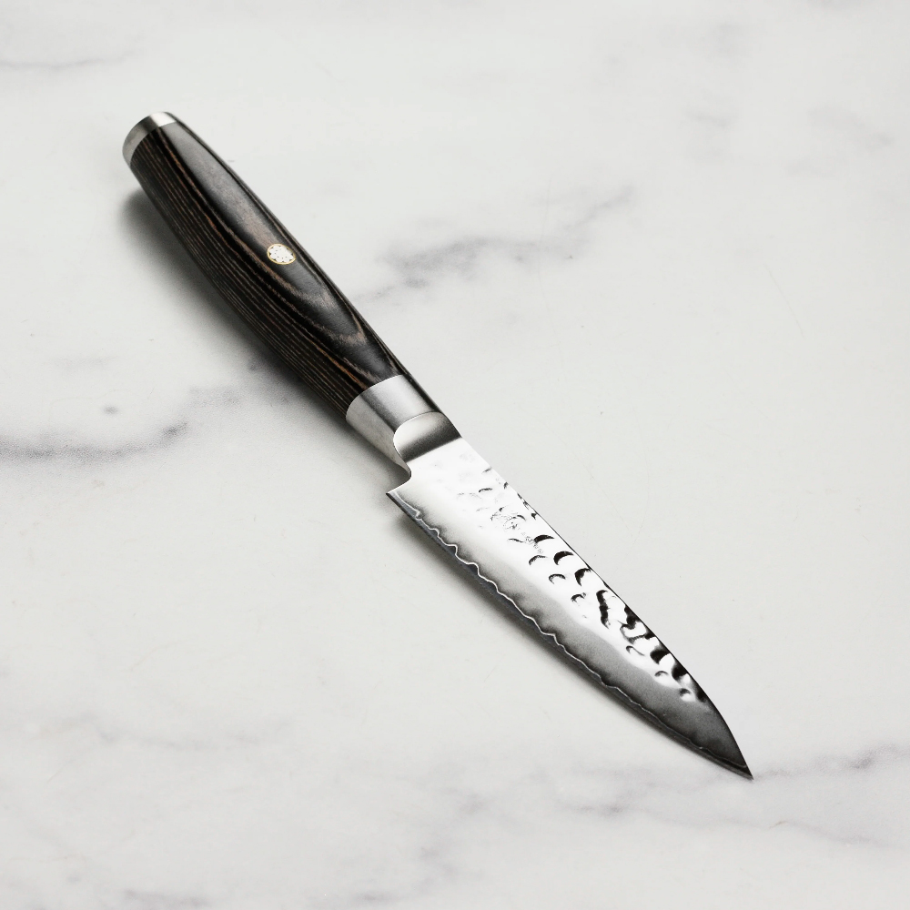 Японський ніж для чистки серії KETU з лезом 10 см з дамаської сталі підходить для щоденного використання на професійній або домашній кухні, оскільки витримує будь-яке робоче навантаження.