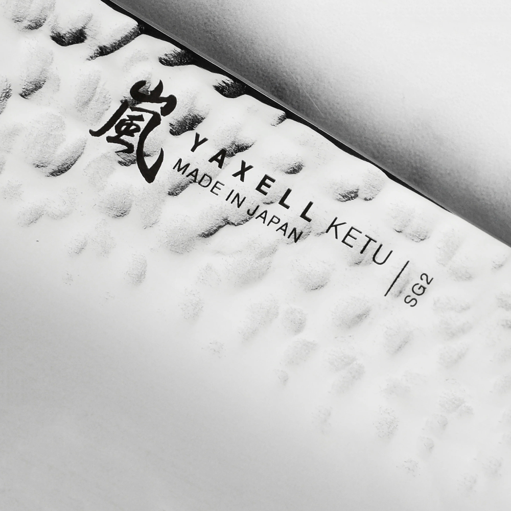 Серія японських ножів KETU – новинка Yaxell 2022 –в перекладі з японської мови «Простий та бездоганний». KETU – більш доступна за ціною альтернатива дорогим серіям Gou та Super Gou. Має в основі клинка таку саму марку сталі, та яскраво виражений дизайн. Поступається кількістю шарів дамаску, але поряд з цим ніж має пристойну функціональність.