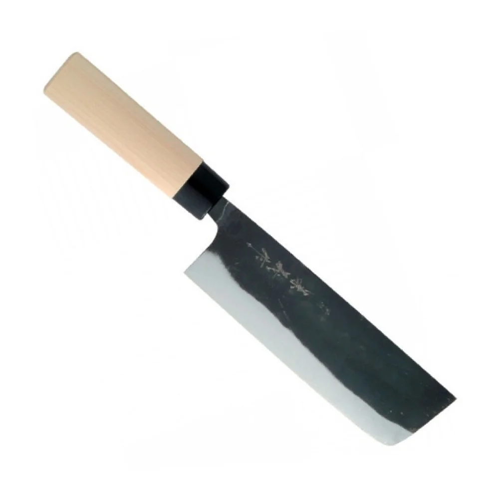 Ніж виконаний у традиційному японському стилі з преміальних матеріалів – вуглецеваої сталі SK5+чорна сталь, ручка виконана з деревини магнолії. Ергономічність, бездоганна збалансованість та міцність конструкції – забезпечують кухонному ножу надійність, безвідмовність та довговічність роботи.
