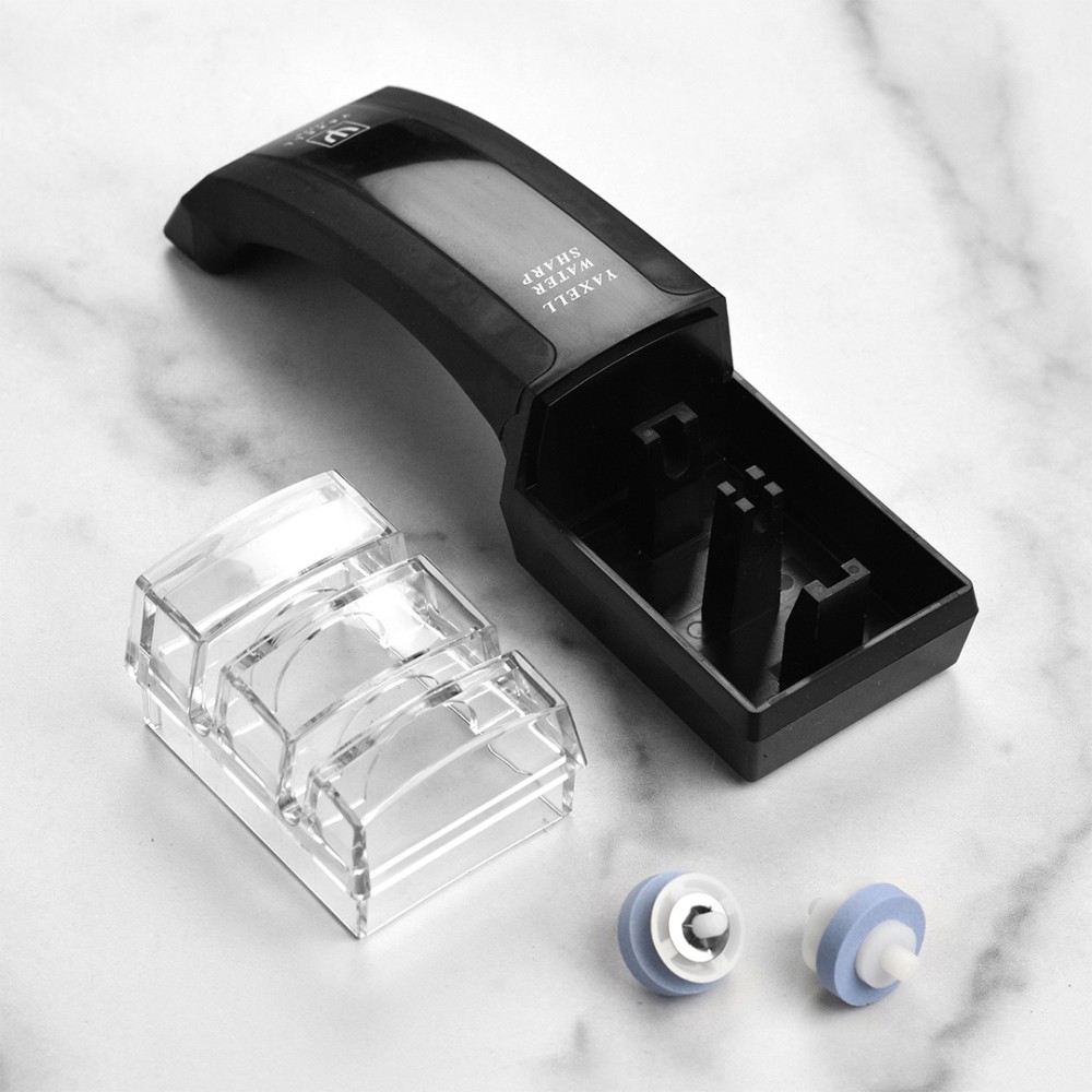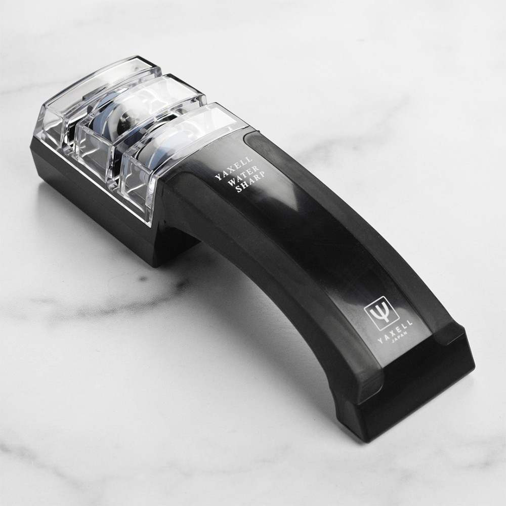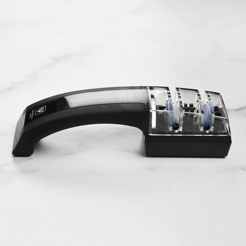 Точилка Yaxell GOU SHARP створена для заточування ножів серії Yaxell Gou, але так само якісно зможе заточити ножі та інших виробників. У використовується абразив 400 Grit, що дозволяє не лише заточити, а й прибрати дрібні відколи і замини на ріжучій кромці. На допомогу кухареві, точилка оснащена направляючими, які допоможуть витримати заданий кут - опція особливо корисна для новачків, що тільки набувають перших навичок у заточувальній справі.