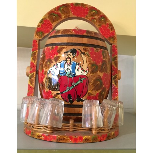 Бочка розписна з рюмками.
