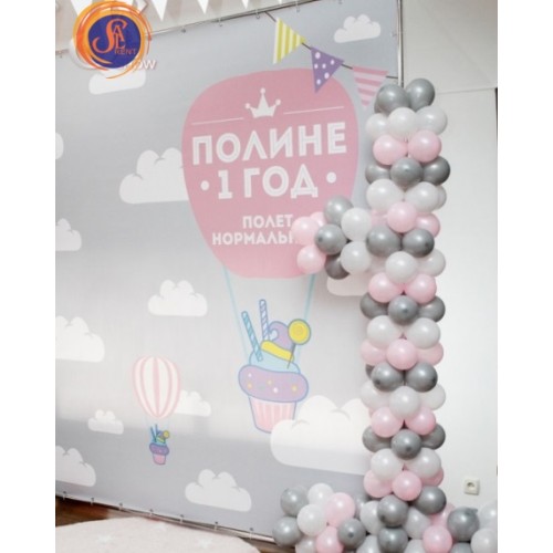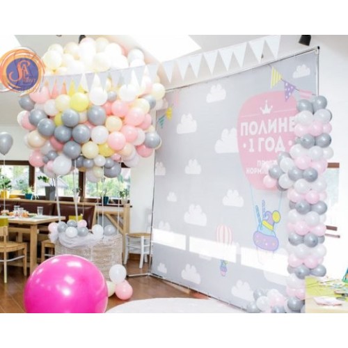 Ніжна фотозона з повітряною кулею та всіляким аеродекором. Відмінно підходить для святкування Дня народження маленьких діток;) Кольори можуть бути різні.