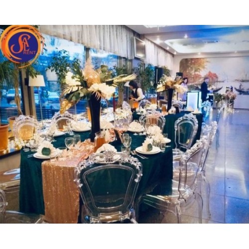 Якщо весілля має на увазі особливий стиль або колірну гаму, особливо чудово і стильно виглядатимуть прозорі стільці «Лайт» та легендарні «Louis Ghost». Це справжня знахідка, вони підійдуть під найсміливіший декор! Легкі, якісні весільні стільці привезені з Європи, вони, як невидимки, безбарвні, прозорі, повітряні. Дивишся – ось вони стоять, а в загальну концепцію вписуються непомітно.