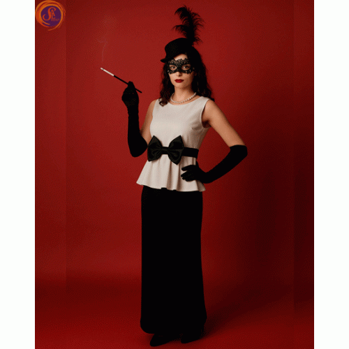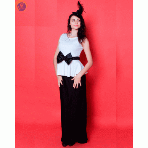 Вечірній костюм/сукня в підлогу: чорна спідниця+ білий топ з бантом.