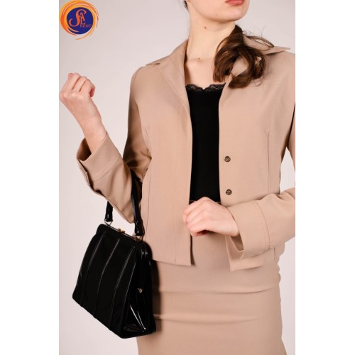 Діловий жіночий костюм: піджак укорочений +спідниця футляр міді.