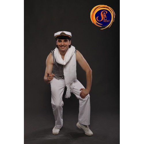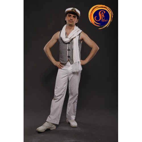 Колір: штани-кепка, шарф: білі; жилет в полоску.