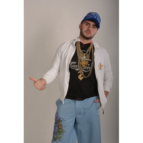 3. Репер: белый спортивный костюм, кепка, цепи.
