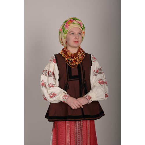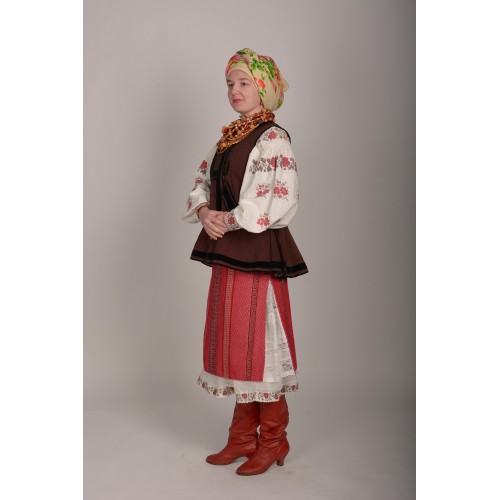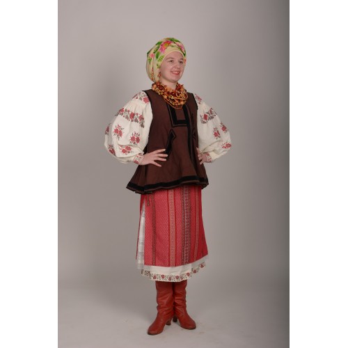 В набір входить: домоткана старовинна сорочка, плахта, кушак, платок, корсетка, написто, сапоги.