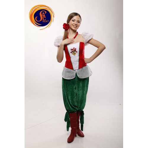Колір: шаровари- зелені велюрові; корсет- червоний з білими ліхтариками.